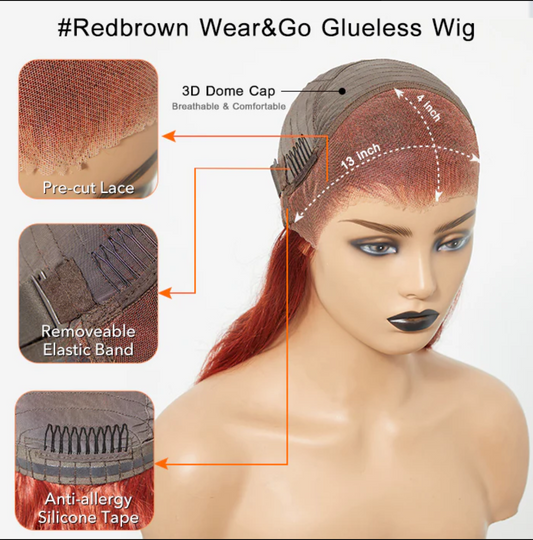 24" Body Wave Wear & Go Glueless Lace Frontal Wig – 13"x4" | Red Brown | 100% Human Hair