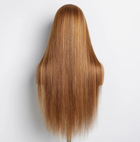 Slay Effortlessly with Our 13x4 Lace Frontal Wig – #4/27 Two-Tone Straight Perfection ✨ Medium Brown Swiss Lace | 100% Human Hair | 150% Density ✨
